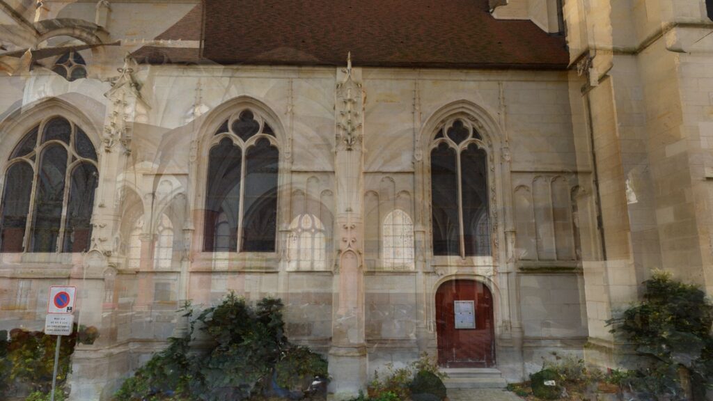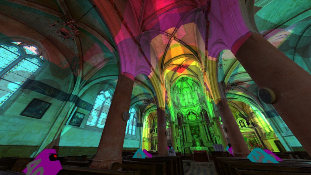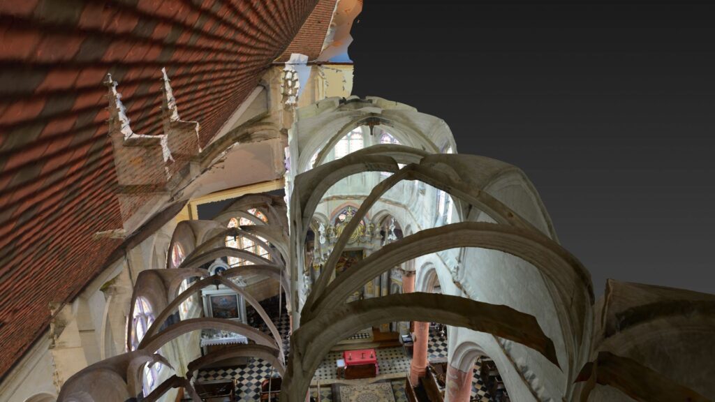 Je mets tout ça à l’échelle et bien orienté dans l’univers 3D et j’en profite pour fusionner l’extérieur de l’église que j’avais relevé en 2022.
