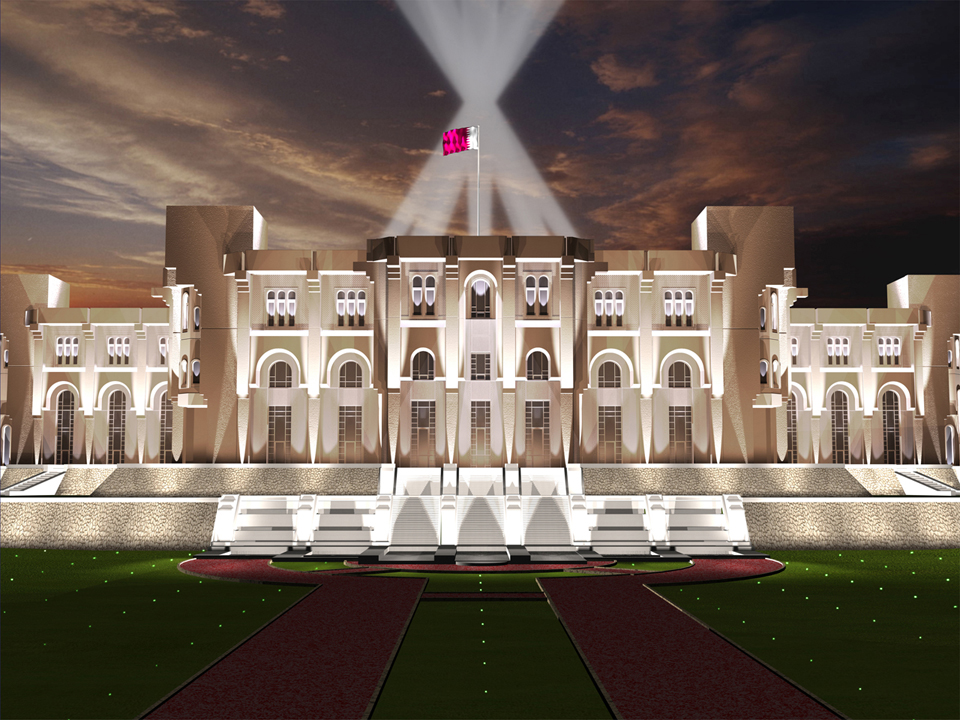 2006 Amiri Diwan Doha Qatar, création de la maquette tridimensionnelle et simulations de lumière architecturale